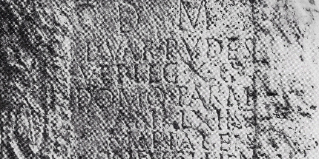 “Agli Dei Mani. Qui giace Lucio Vario Pudente, veterano della Legione X Gemina, di anni sessanta, da Parma. Al piissimo coniuge Maria Geis pose”.